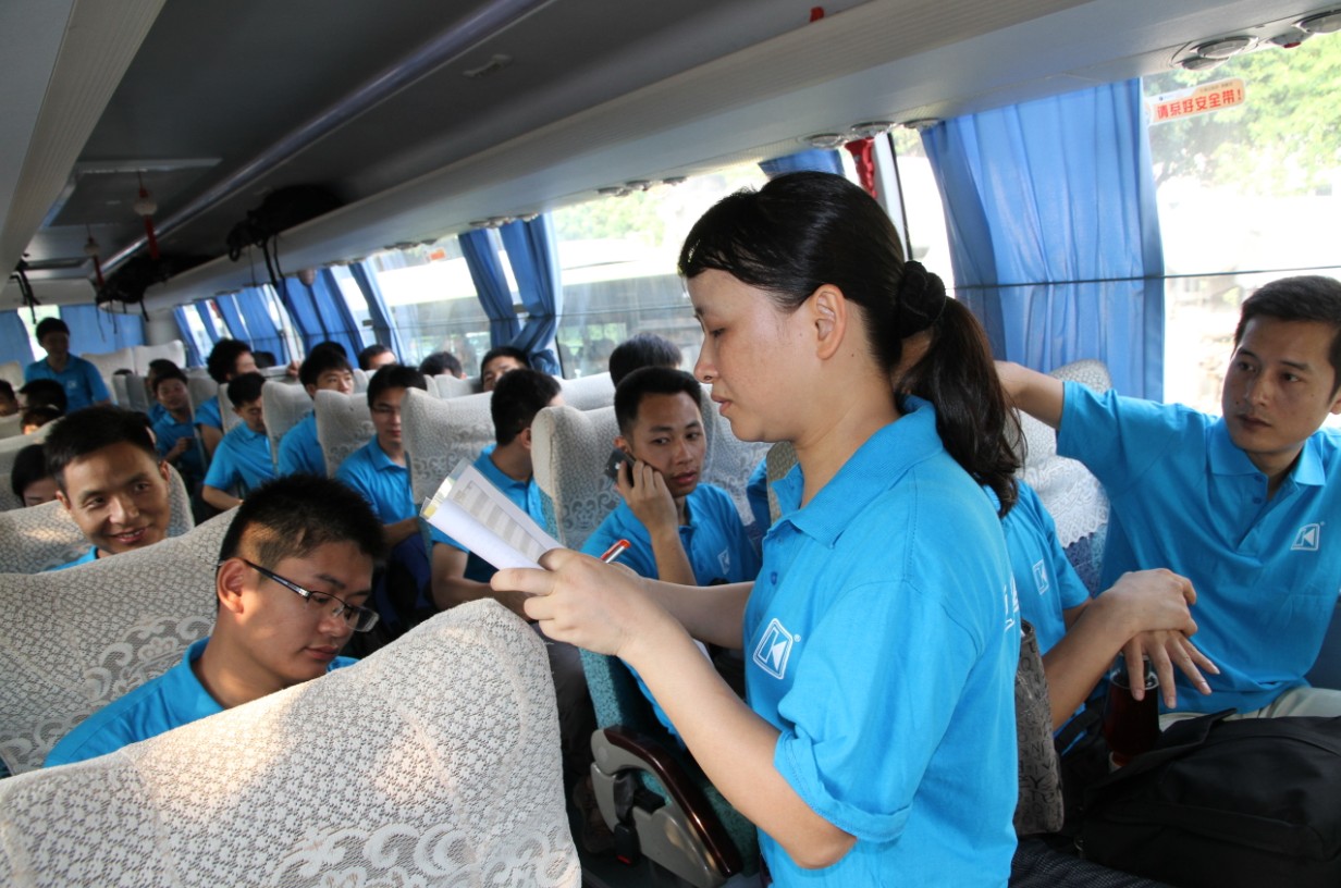 圖2:出發時人事部鐘姐向團隊成員們宣讀注意事項