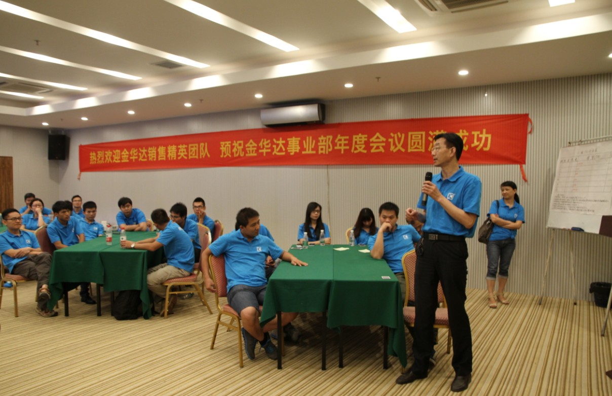 金華達高層領導出席本次會議對上半年事業部工作做出數據分析和總結,通過針對各區域銷售數據與行為的一對一分析,總結上半年各區域存在的問題,針對存在問題提出切合實際的解決方式并且對各區域服務團隊予以市場工作指導和進一步規范。各區域團隊成員通過與金華達高層領導的積極溝通與配合,紛紛對上半年工作面臨的問題和改進的方向進行探討,積極配合公司市場戰略規范目標,通過多層次、全方位的自我分析和相互學習,團隊成員對于金華達下半年市場目標任務充滿信心。