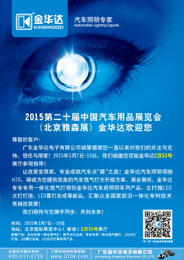 讓改裝變原裝,專業(yè)成就汽車點睛之美!金華達汽車照明領跑HID,竭誠為您提供完美汽車氙氣燈改裝升級方案,展會期間,金華達專車專用一體化氙氣燈領銜金華達汽車前照明全系列產(chǎn)品,主打推出專用一體化氙氣燈、LED大燈燈泡、LED霧燈總成等全新產(chǎn)品,匯聚眾多國家前沿一體化專利技術亮相改裝展!
