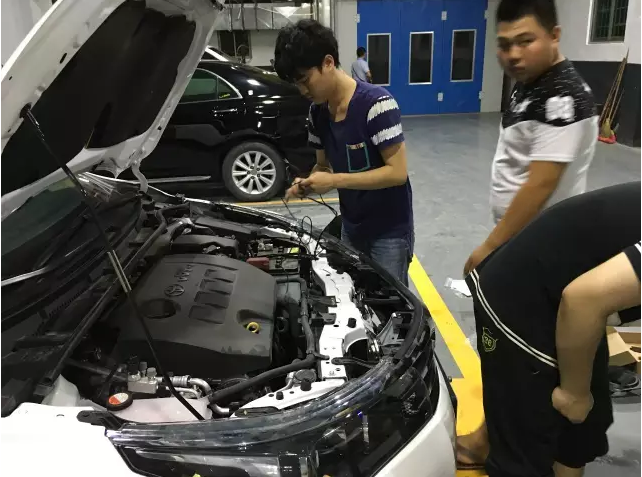 天擎店技師團隊在對卡羅拉實施標準燈光現場施工